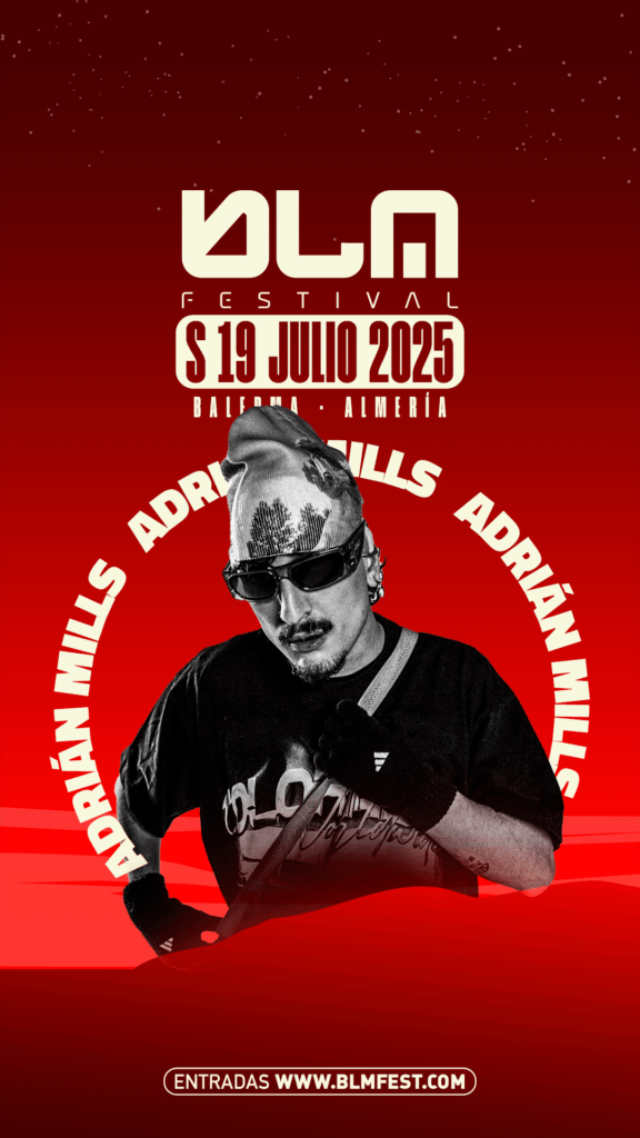 El último artista en unirse al cartel de BLM FEST es Adrián Mills, fundador y gurú de 240 KM/H. Adrián es conocido por su estilo musical ecléctico y dinámico, que abarca una amplia variedad de sonidos contundentes. Su paleta sonora incluye (Early) hardstyle, hardcore, acid y hard techno, todos ellos fusionados con elementos únicos como influencias ghetto y vocales. Además otros dos miembros de la plataforma musical 240 KM/H se subirán a la cabina del festival almeriense, Fumi y Human Error llenarán de electricidad sonora y de contundencia el escenario de BLM FEST.