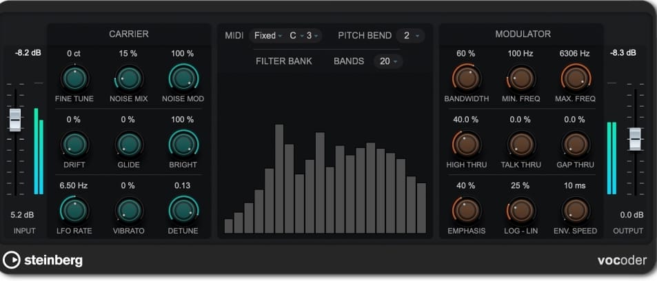 No se olvidan en Steinberg de aquellos a quienes les gusta estrenar efectos, y por ello han renovado por completo su clásico Vocoder, y añadido otros dos orientados al procesamiento de voces con VocalChain, que es una herramienta de tratamiento integral de voces que ofrece una amplia cadena de procesos con los que obtener un sonido 100 % profesional; y VoxComp, un compresor especializado en material vocal diseñado para domar cualquier toma sin comprometer la claridad, los transitorios o la expresión de la voz. Y con BlackValve es un compresor virtual clásico a válvulas que añade calidez y carácter y que, según sus creadores, destaca por su gran riqueza de matices sonoros. Un recién estrenado compresor al que además se podrá acompañar con los nuevos ecualizadores pasivos EQ-P1A y EQ-M5.