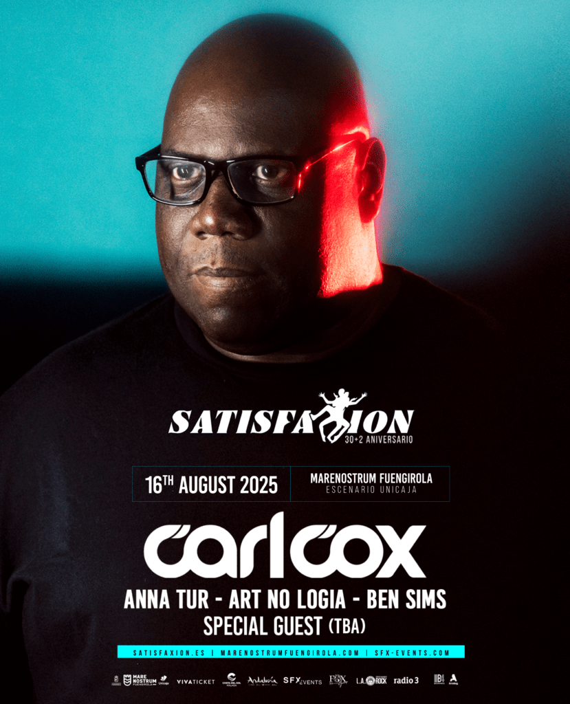 El line up que ha diseñado Satisfaxion para el 16 de agosto encabezado por Carl Cox casi está completado a falta de un artista especial que será anunciado próximamente
