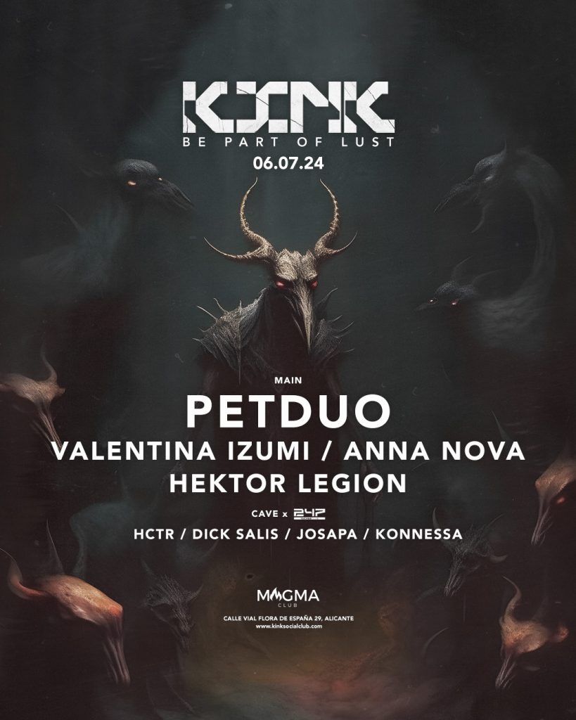 kink social club regresa a la Sala Magma de Alicante el próximo 6 de julio con la actuación de PETDuo, Valentina Izumi, Anna Nova y Hektor Legion