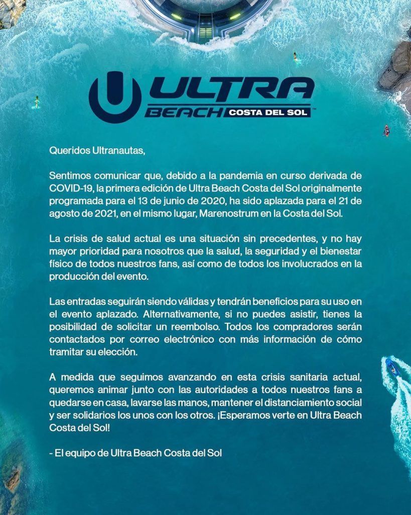 Comunicado cancelación Ultra beach